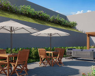 Apartamentos Inteligentes: Unidades de 42 a 56 m², com 2 dormitórios, suíte e terraço com churrasqueira a carvão, projetadas para otimizar o espaço e proporcionar conforto.