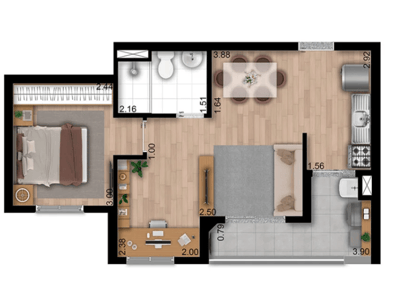 43,09 m² - Ampliada