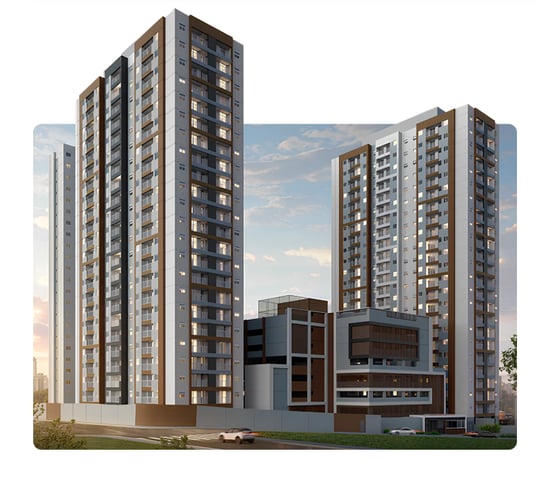 Infraestrutura Moderna: 3 torres residenciais, edifício garagem, 739 vagas para carros, 93 para motos e 35 para visitantes, além de portaria 24 horas e segurança.